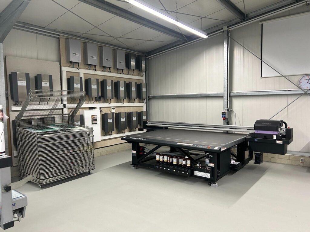 Modernste Drucktechnologie für gestochen scharfe Ergebnisse: Die Tinte wird direkt auf das Material aufgetragen und durch UV-Licht sofort gehärtet. Das sorgt für schnelle Trocknung, kurze Produktionszeiten und eine effiziente Weiterverarbeitung.